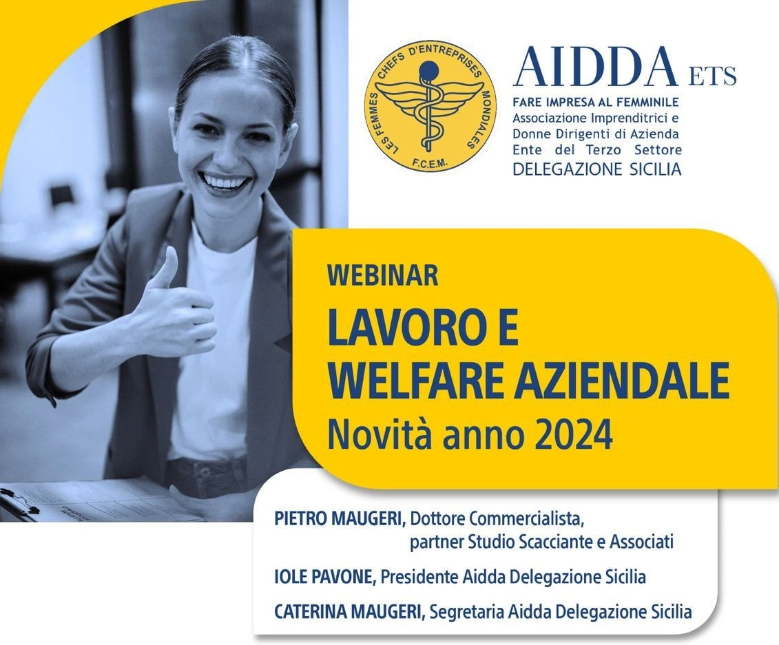 AIDDA Delegazione Sicilia: Webinar “Lavoro e welfare aziendale – Novità anno 2024” martedì 26 marzo 2024 ore 17:00