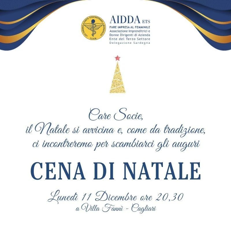 AIDDA Sardegna: “Cena di Natale & Premio AIDDA 2023” lunedì 11 dicembre 2023 ore 16:30 c/o Comune di Cagliari e ore 20:30 c/o Villa Fannì, Cagliari