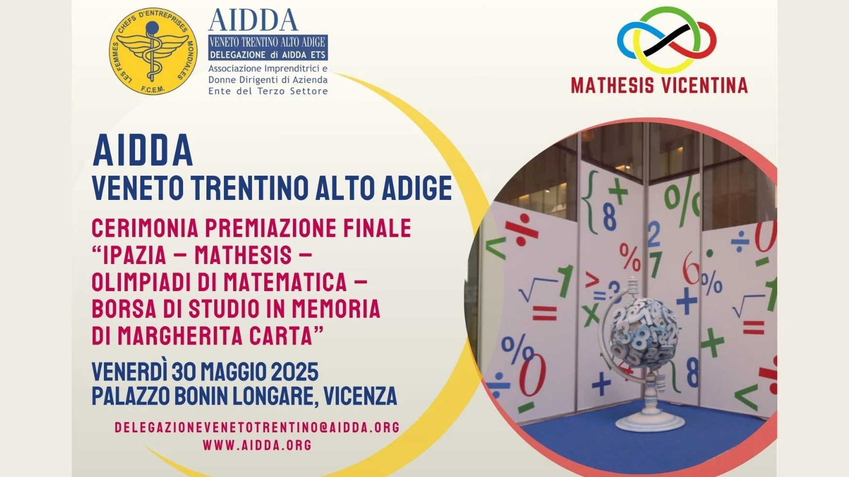AIDDA Delegazione VTAA: Cerimonia Premiazione Finale “IPAZIA – MATHESIS – OLIMPIADI DI MATEMATICA – Borsa di Studio in memoria di Margherita Carta”