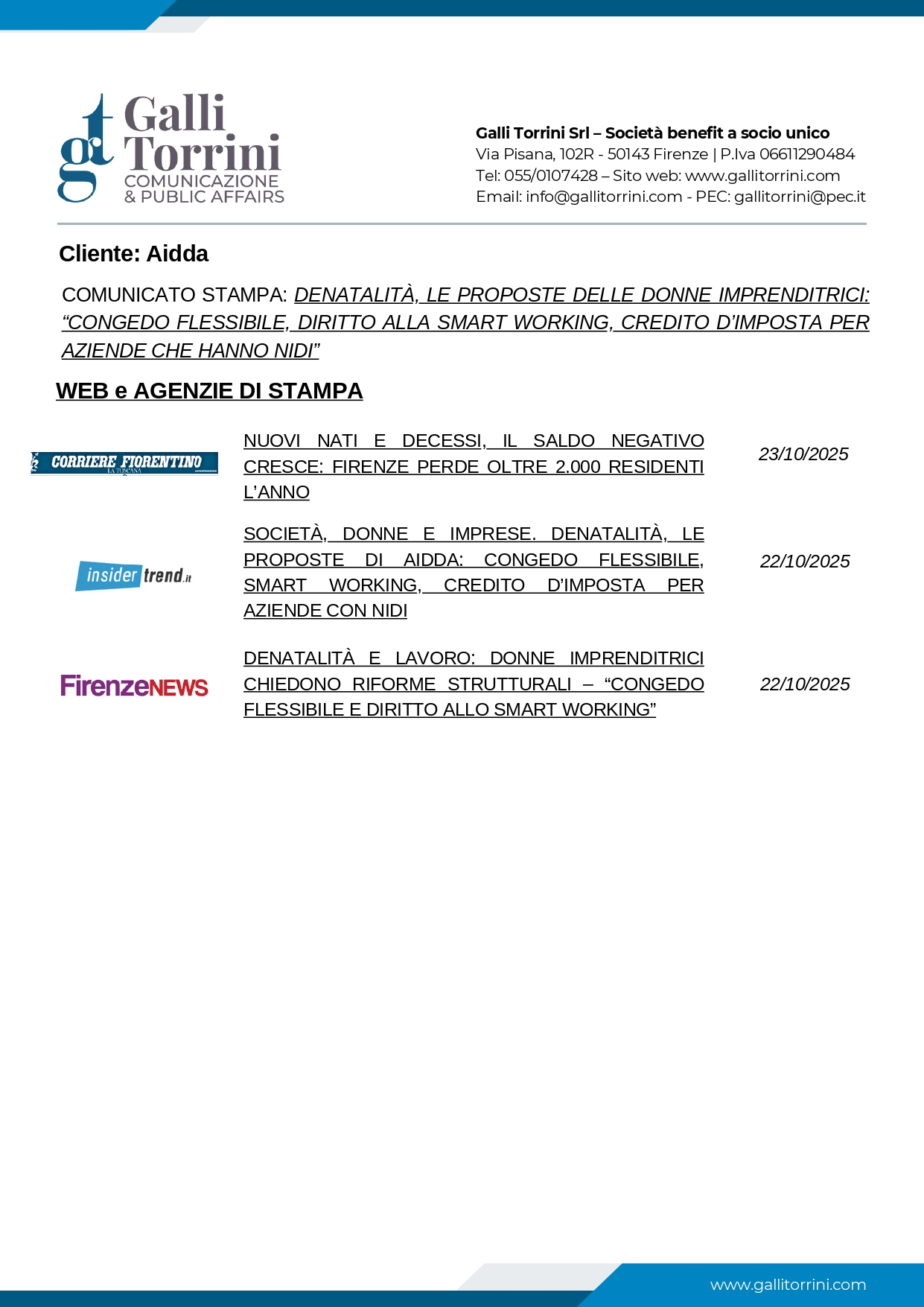 PDF – RASSEGNA STAMPA – COMUNICATO STAMPA – AIDDA ETS NAZIONALE – Denatalità, le proposte delle Donne Imprenditrici: “Congedo flessibile, diritto alla smart working, credito d’imposta per aziende che hanno nidi”