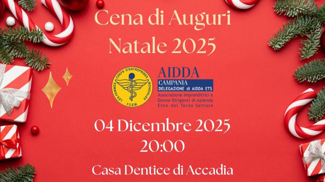 La Cena degli Auguri della Delegazione Campania si svolgerà il 4 dicembre 2025 alle ore 20:00 alla Casa Dentice di Accadia, Napoli