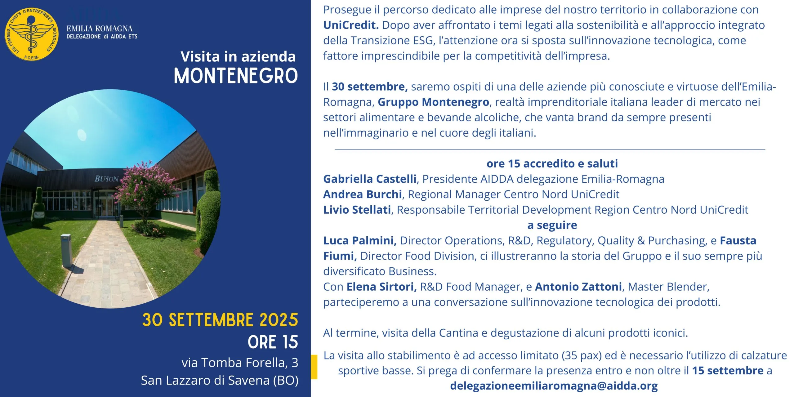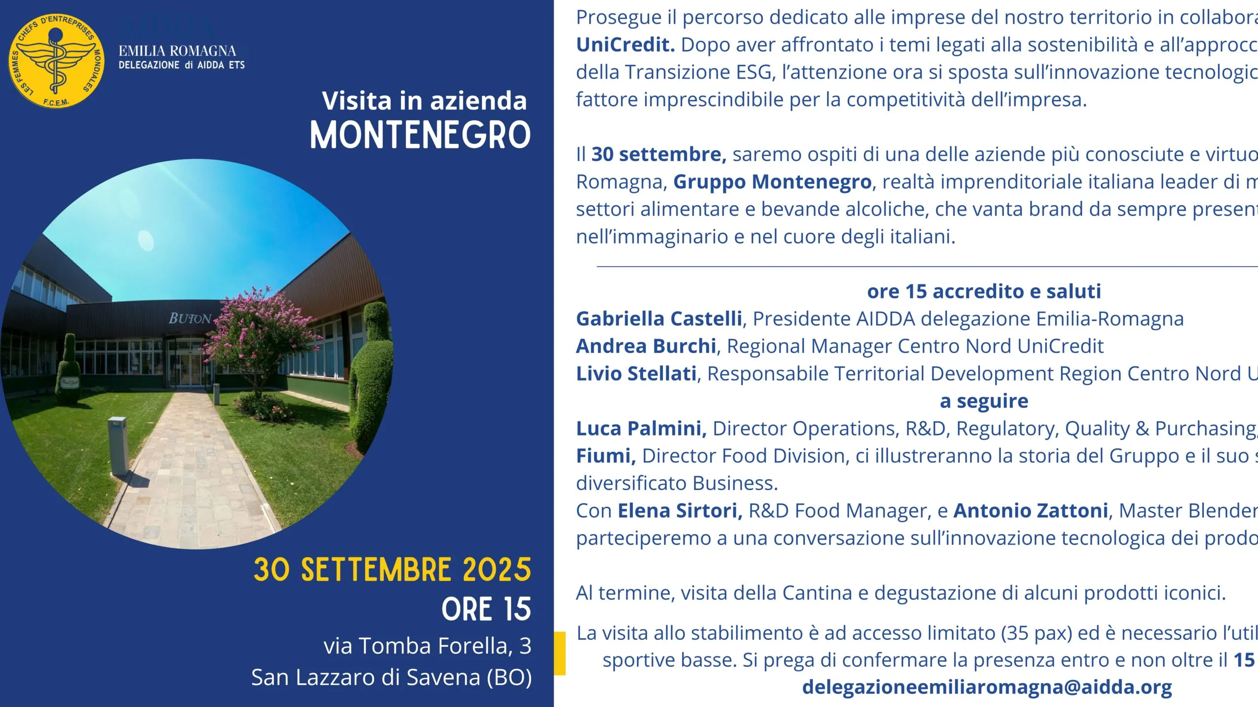 Locandina AIDDA Delegazione ER: “Visita in azienda MONTENEGRO”