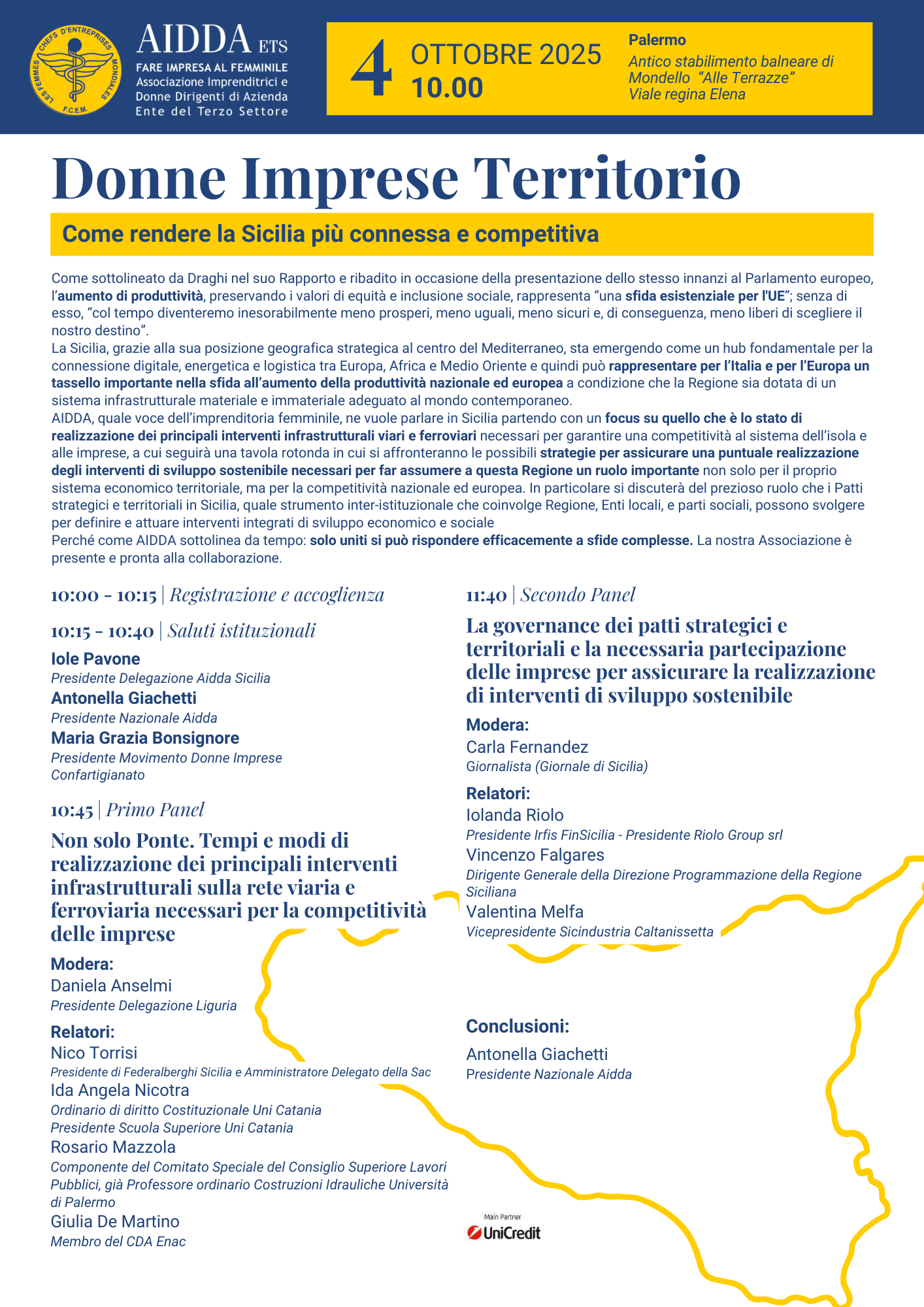 CONVEGNO NAZIONALE – “Donne Imprese Territorio – Come rendere la Sicilia più connessa e competitiva” – Palermo 4 ottobre 2025