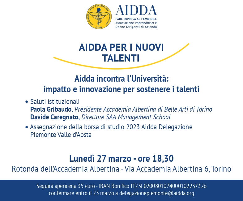 Per info e partecipazioni contattare delegazionepiemonte@aidda.org entro il 25 marzo 2023