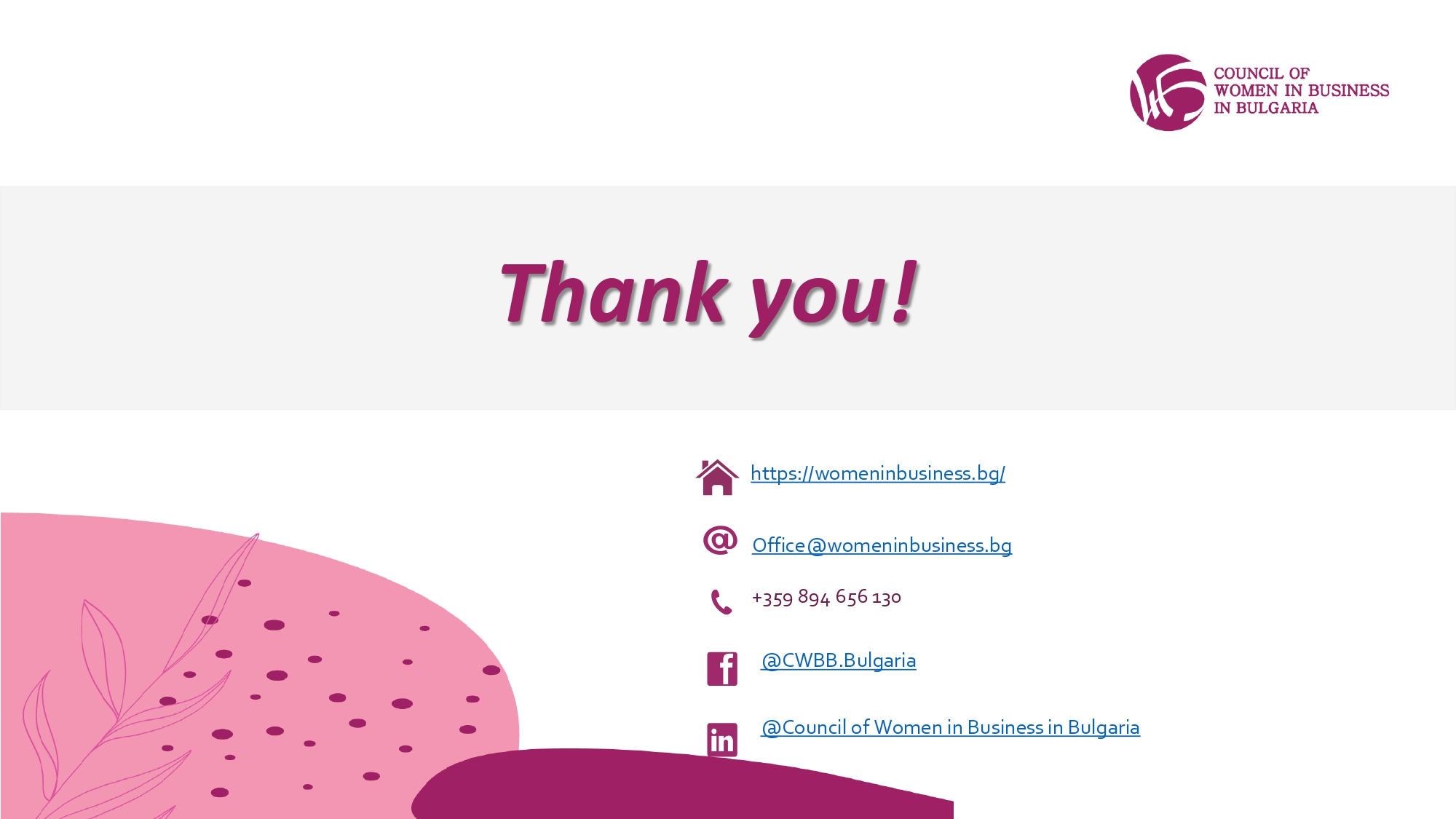 Ulteriori informazioni sono disponibili sul nostro sito web ufficiale, https://womeninbusiness.bg/new-site/.