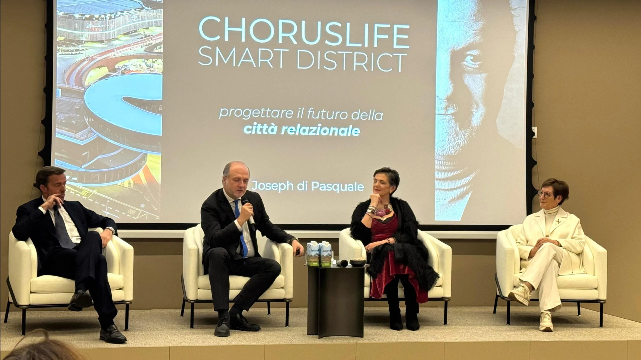L’architetto Joseph Di Pasquale e l’avvocato Francesco Percassi hanno illustrato il progetto che ha dato vita a Chorus Life.  La serata è continuata con la visita allo Smart District e la cena conviviale.