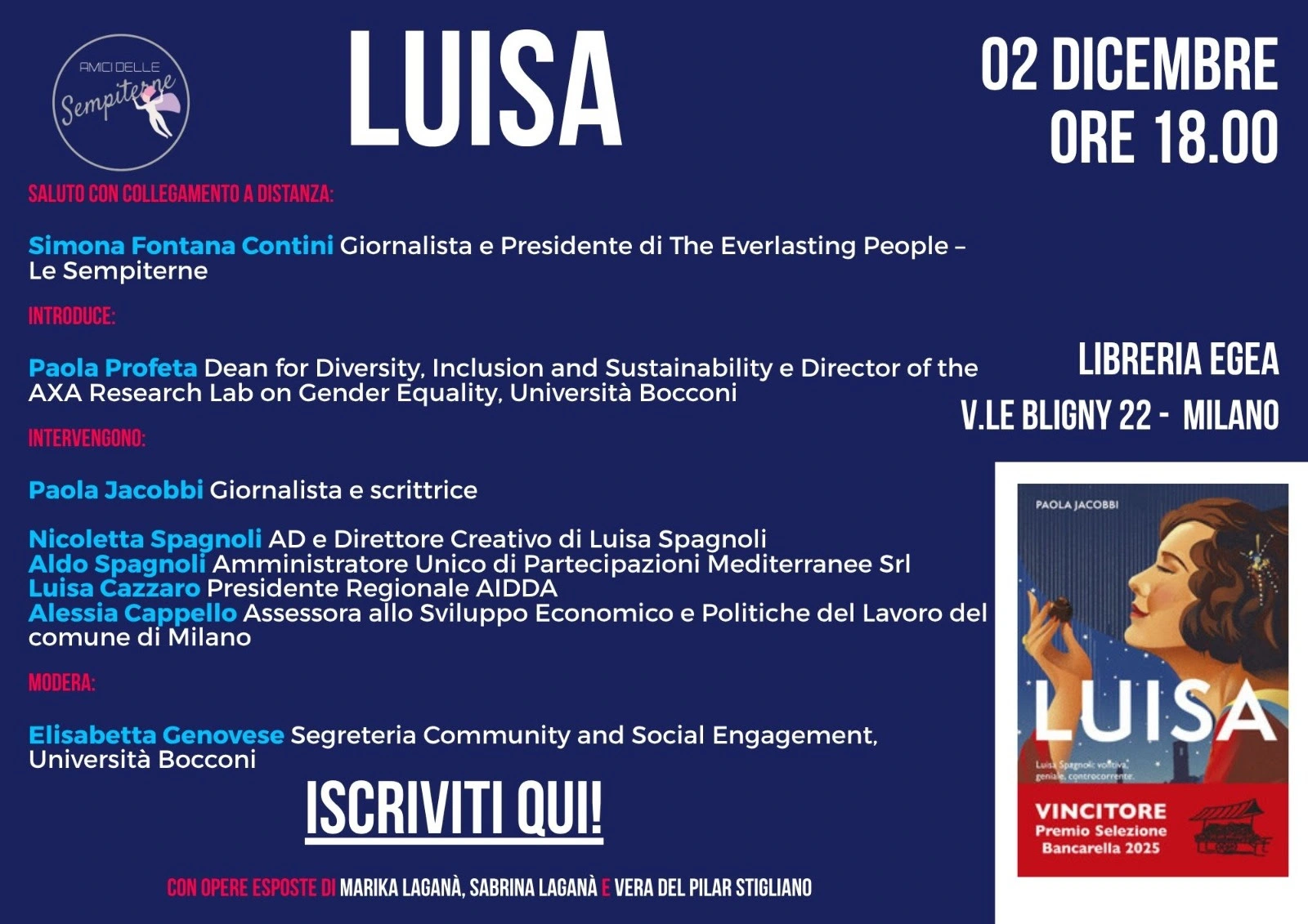 Il 2  dicembre presso la Libreria Egea, in viale Bligny 2 a Milano, verrà presentato il libro Luisa, di Paola Jacobbi