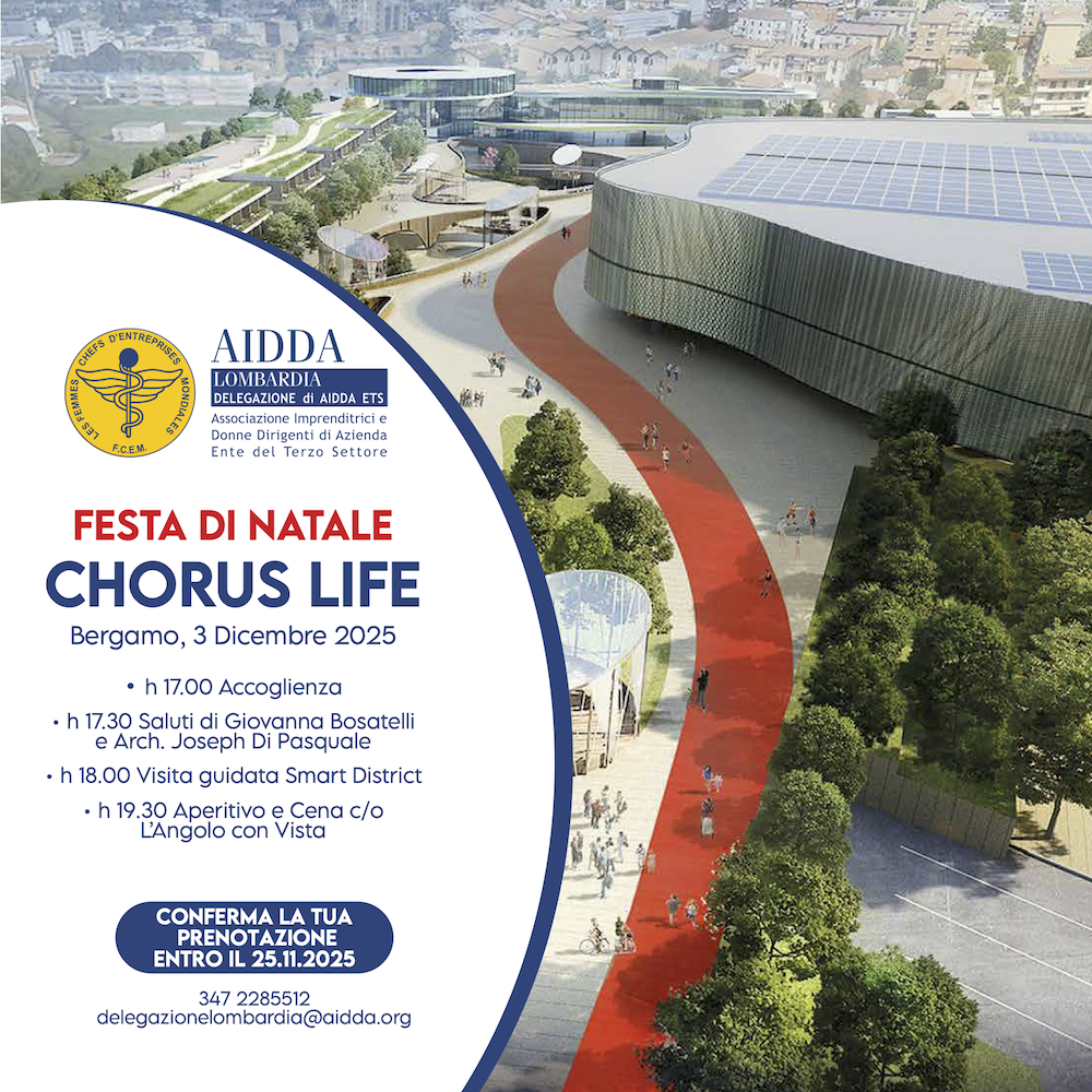 Il 3 dicembre  saremo a Bergamo ospiti dell’amica Giovanna Bosatelli e avremo la possibilità di visitare lo smart district Chorus Life, completato con una fantastica SPA, oltre che partecipare all’accensione dell’albero di Natale.