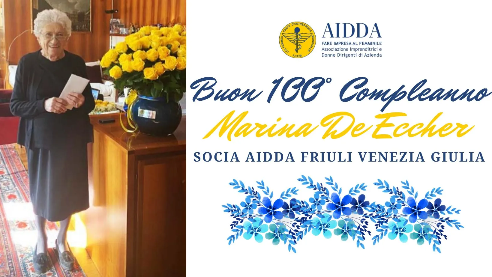 Buon 100° Compleanno alla Socia AIDDA Friuli Venezia Giulia Marina De Eccher !!!