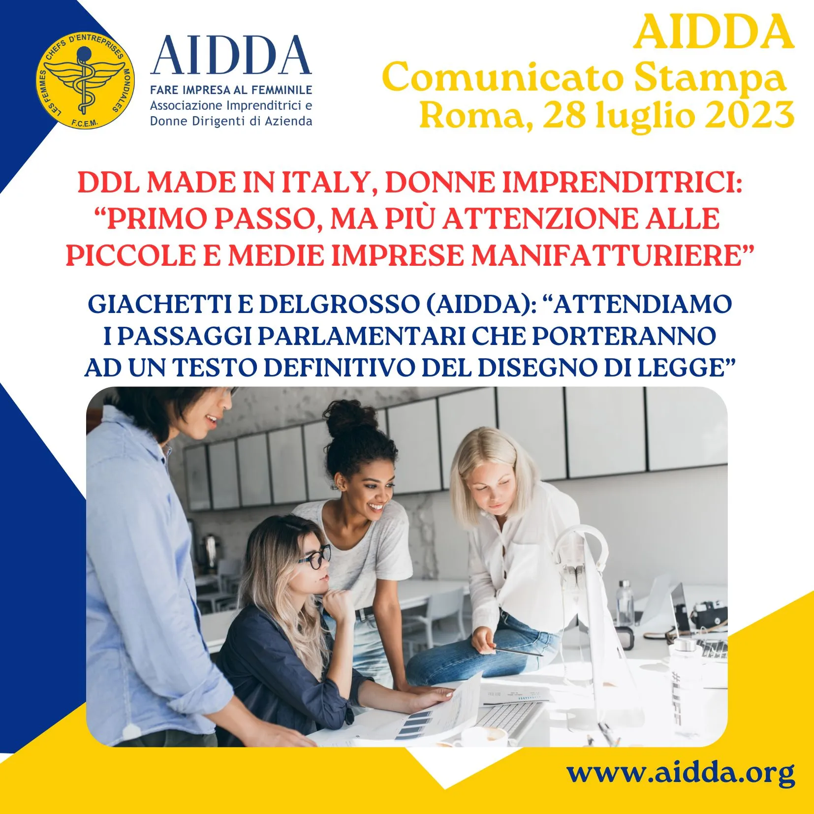 CS AIDDA_28 luglio 2023_Roma_Ddl Made in Italy_Donne imprenditrici_Primo passo ma più attenzione alle piccole e medie imprese manifatturiere
