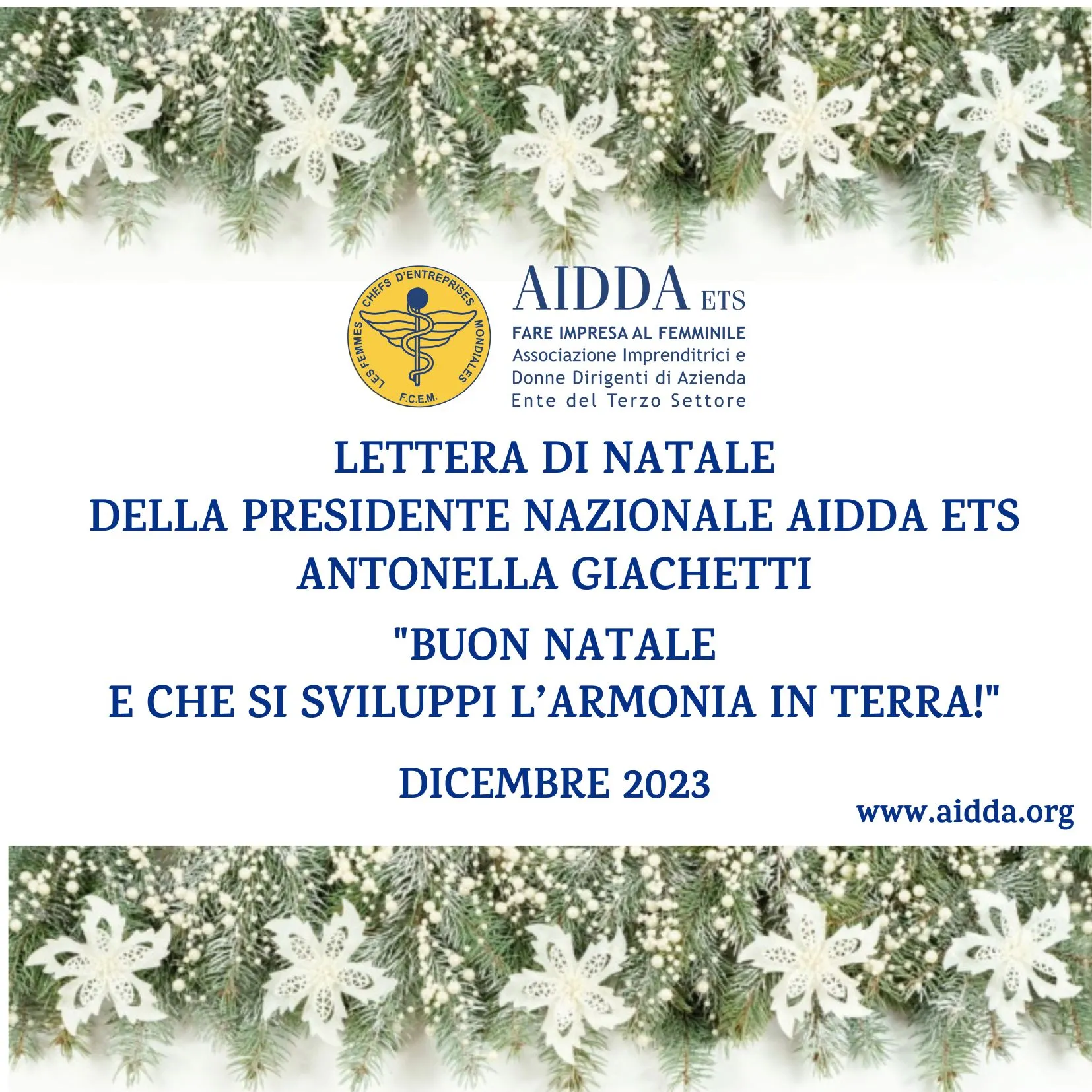 Lettera di Natale della Presidente Nazionale AIDDA ETS Antonella Giachetti