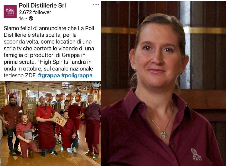 Rendiamo noto che Poli Distillerie Srl della nostra Socia Barbara Poli è stata scelta, per la seconda volta, come location di una Serie TV "High Spirits" che porterà le vicende di una famiglia di produttori di grappa in prima serata. Andrà in onda in ottobre sul canale nazionale tedesco ZDF.